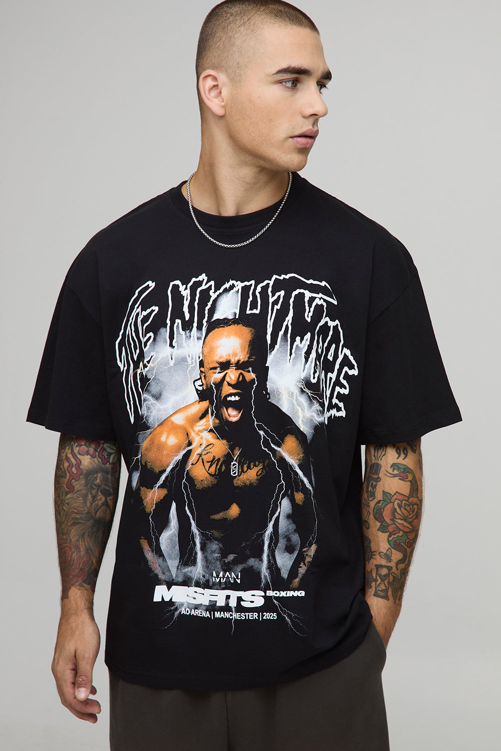 BLACK OVERSIZED MISFITS KSI THE NIGHTMARE LICENSE PRINTED T-SHIRT