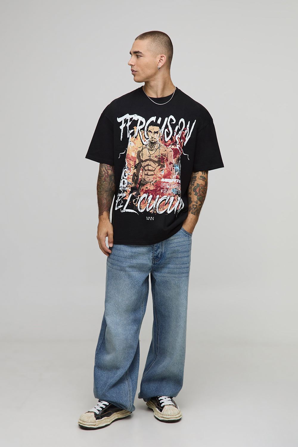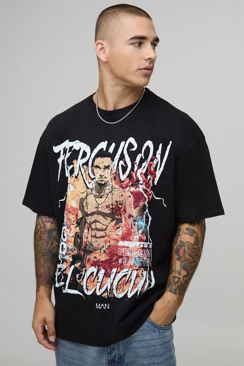 BLACK OVERSIZED TONY FERGUSON MISFITS LICENSE PRINTED T-SHIRT